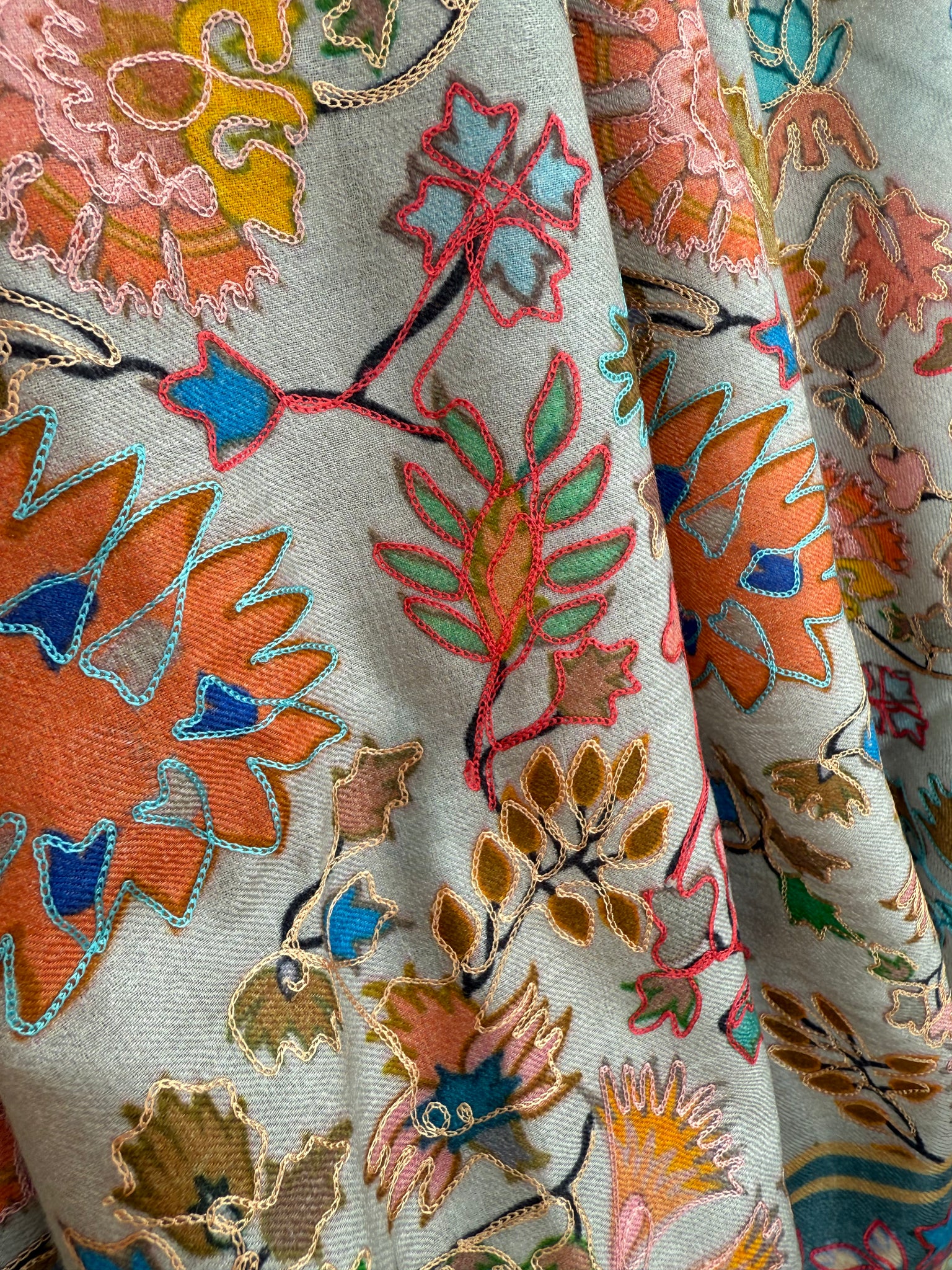Cashmere embroidered, greenish/iceblue colors