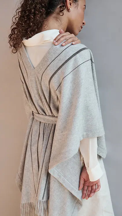 Poncho Jacket Glittering Metal Chain light grey