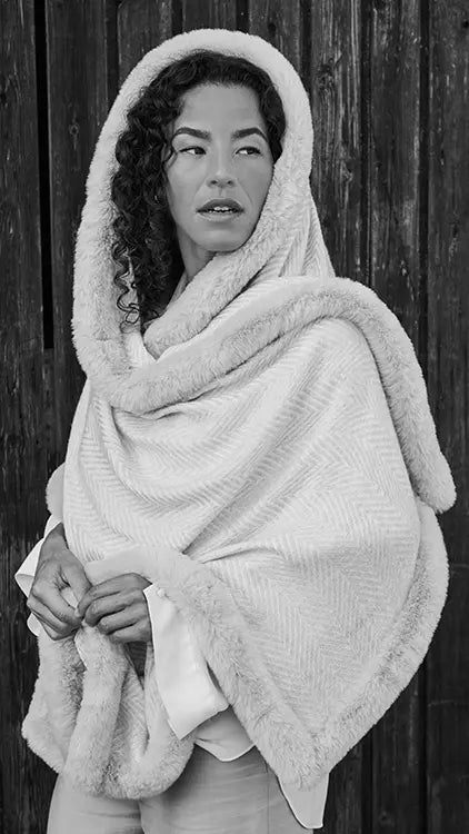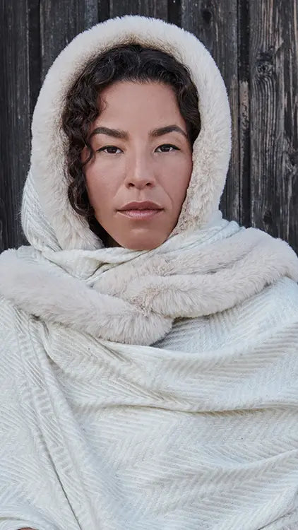 Super soft cashmere scarf jacquard woven with fake fur beige/creme